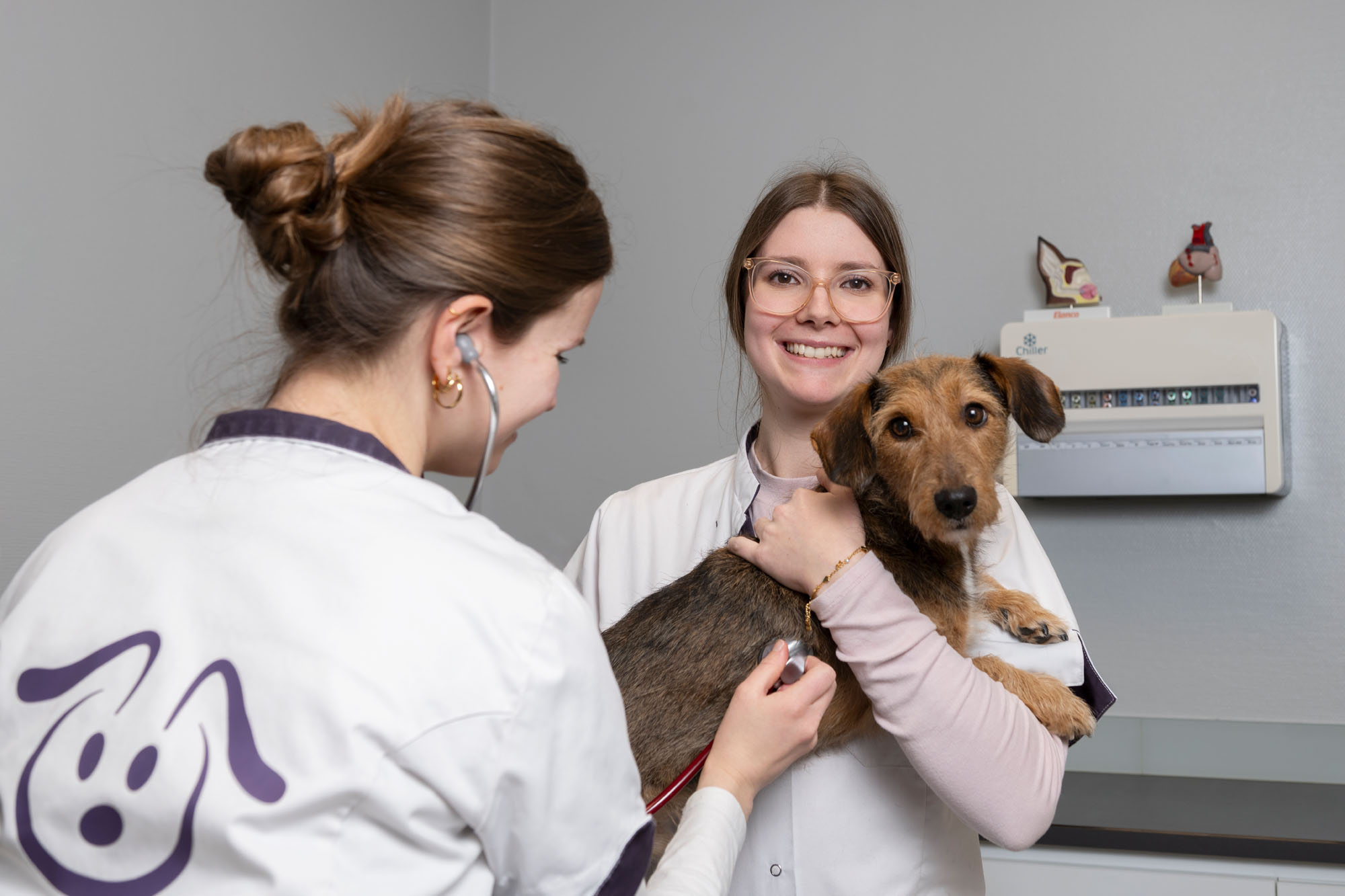 De spreekkamer vormt een belangrijke werkplek binnen de praktijk, de kennis en kunde van alle medewerkers wordt hier toegepast. In de spreekkamer wordt jouw dier onderzocht en wanneer dat nodig is, behandeld. In deze ruimte beschikt de behandeltafel over een ingebouwde weegschaal.