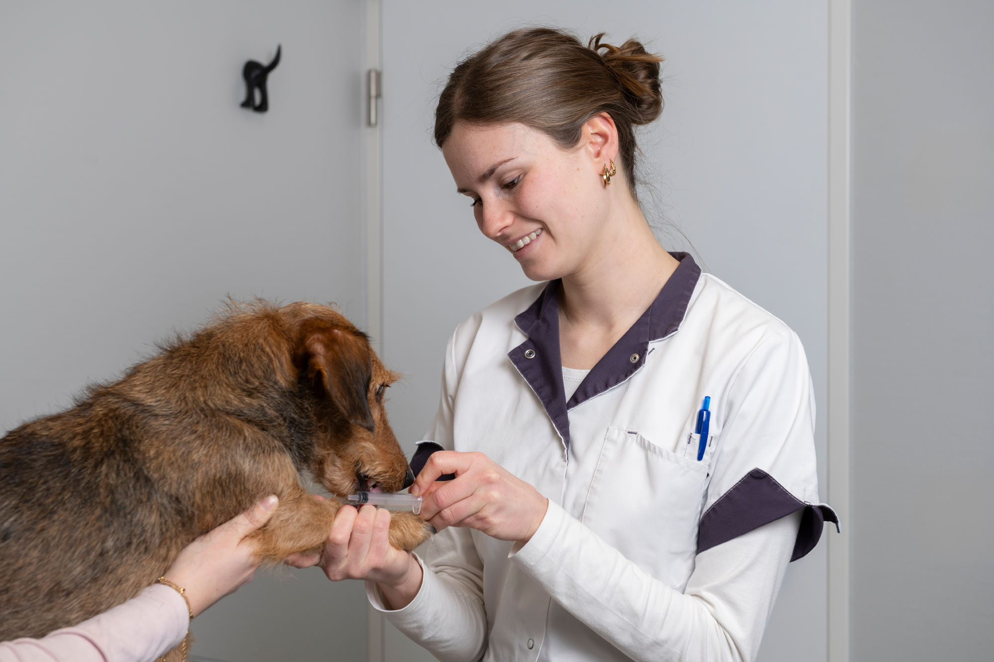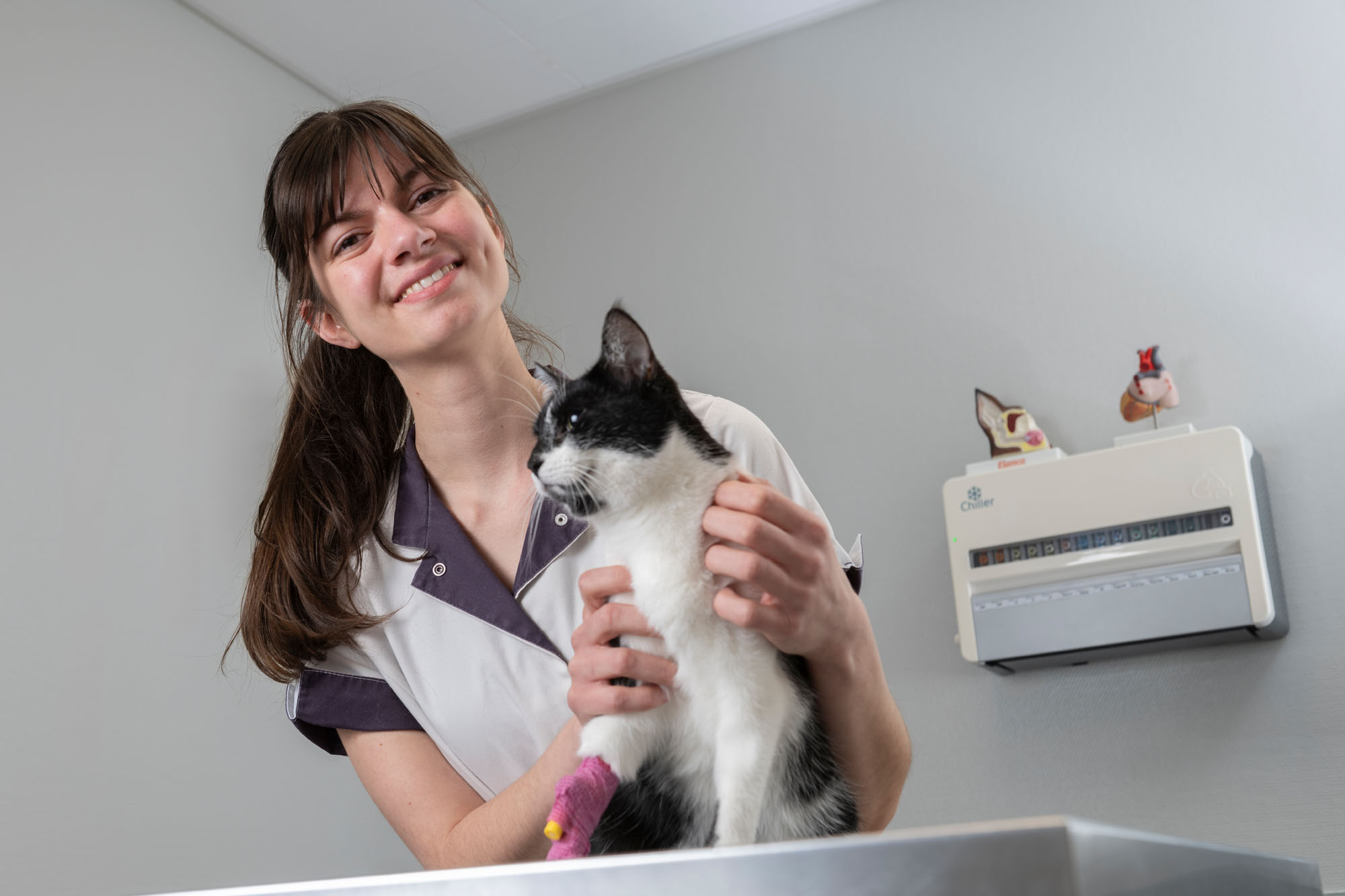 In onze dierenkliniek in Dongen word je ontvangen in de wachtruimte van onze praktijk. De wachtruimte is zowel onze ontvangstruimte als apotheek en informatiebalie. Wij doen er alles aan om jouw maatje te leren kennen en zorgen ervoor dat jij en jouw huisdier zich zo snel mogelijk thuis voelen in onze kliniek. De praktijk beschikt over één volledig ingerichte spreekkamer.